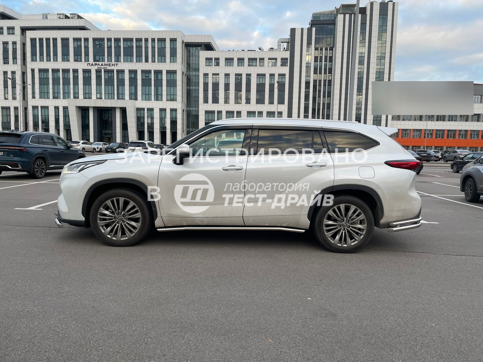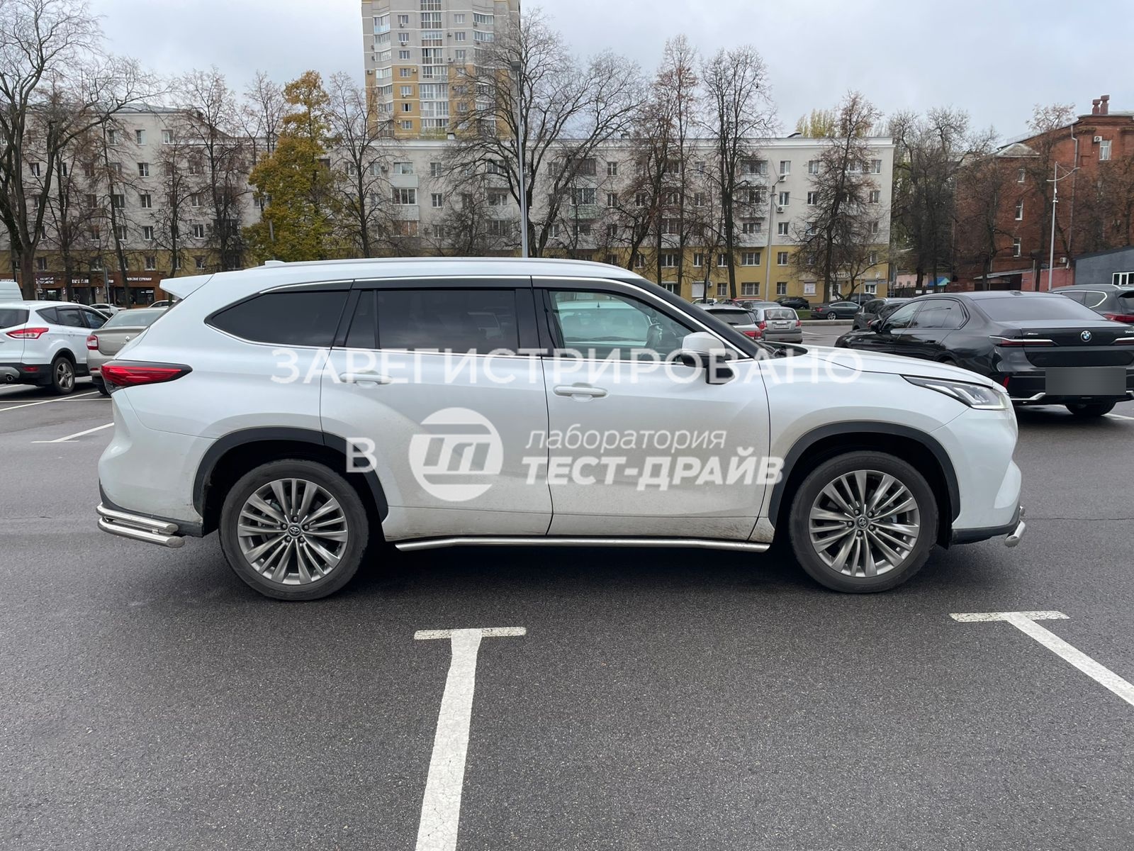 Установка декоративной защиты и порогов на Toyota Highlander в Перми